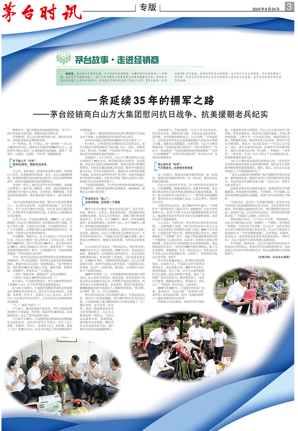 35載初心不改!白山方大集團(tuán)擁軍事跡刊登《茅臺時訊》第三版